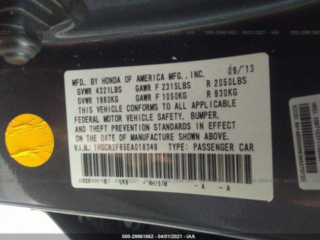 | VIN : 1HGCR2F85EA018346 |