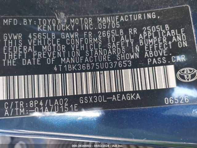| VIN : 4T1BK36B75U037653 |