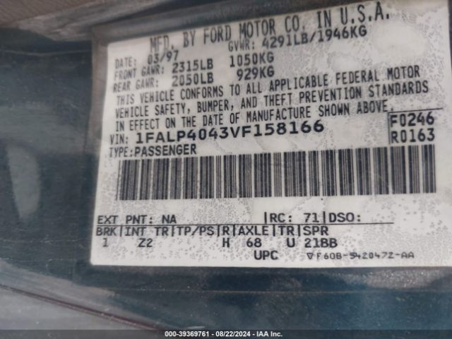 | VIN : 1FALP4043VF158166 |