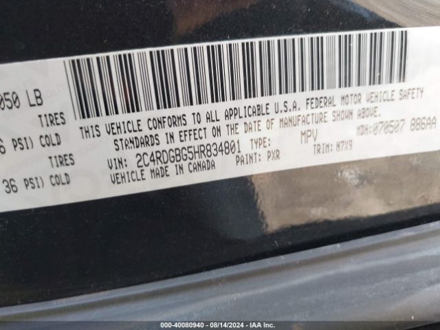 | VIN : 2C4RDGBG5HR834801 |