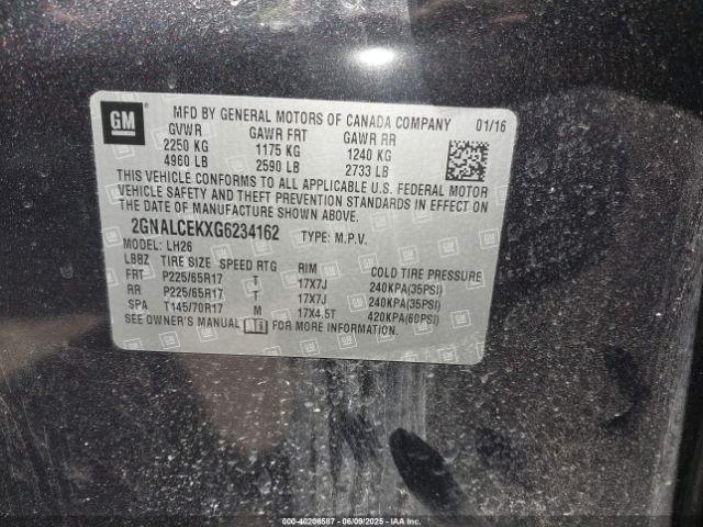 | VIN : 2GNALCEKXG6234162 |