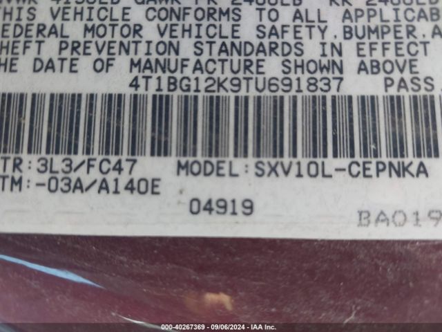 | VIN : 4T1BG12K9TU691837 |