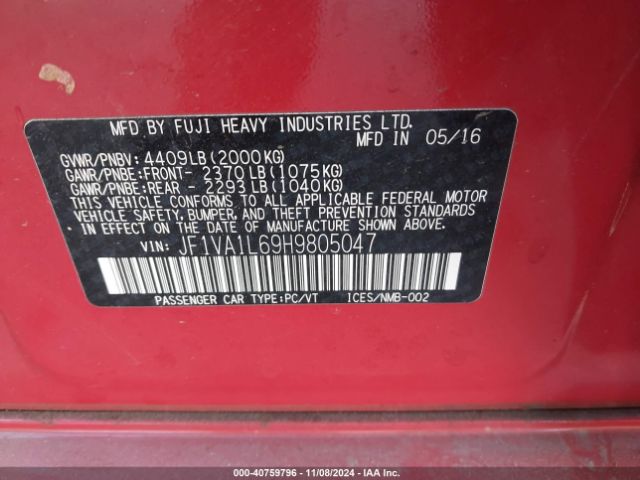 | VIN : JF1VA1L69H9805047 |