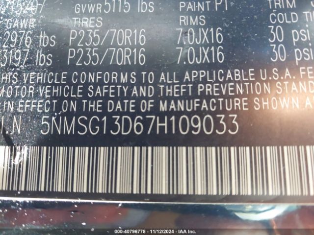 | VIN : 5NMSG13D67H109033 |