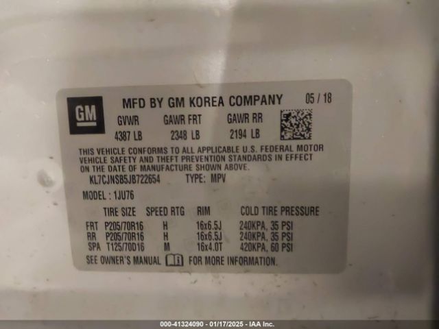 | VIN : KL7CJNSB5JB722654 |