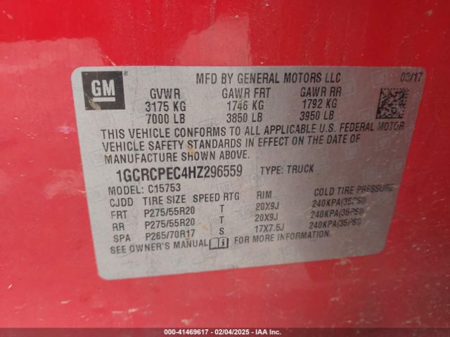| VIN : 1GCRCPEC4HZ296559 |