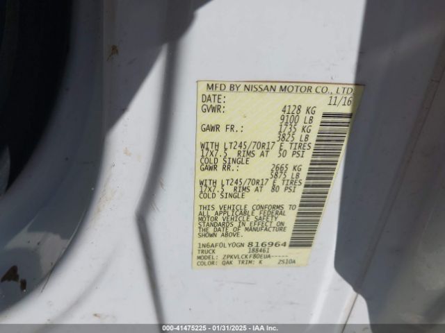 | VIN : 1N6AF0LY0GN816964 |