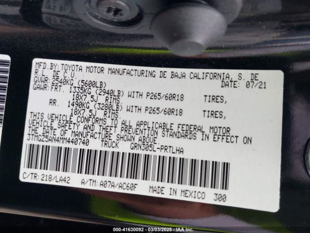 | VIN : 3TMGZ5AN4MM440740 |