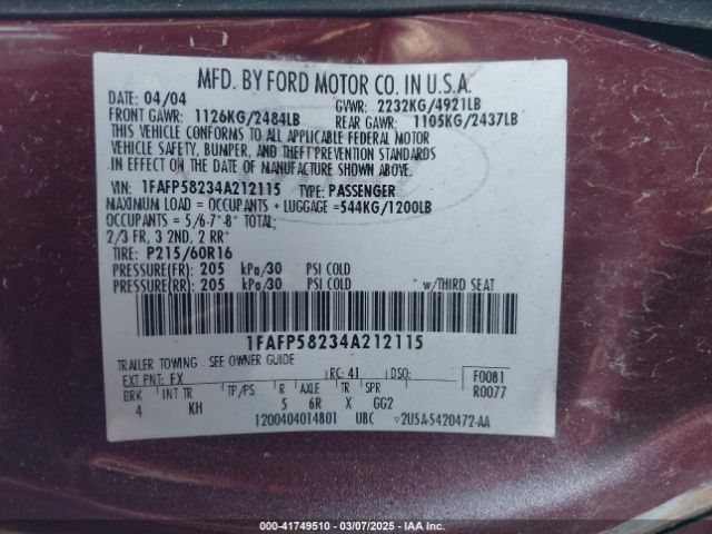 | VIN : 1FAFP58234A212115 |