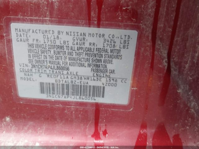 | VIN : 3N1CN7AP4JL860056 |