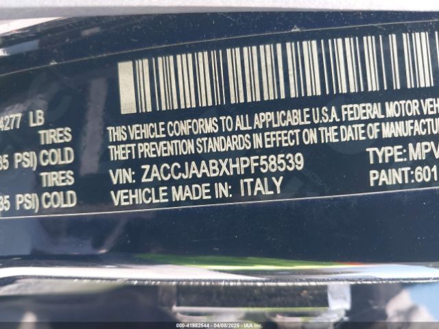 | VIN : ZACCJAABXHPF58539 |