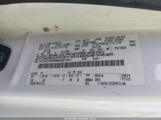 | VIN : 1FTNE1EW8BDA01001 |