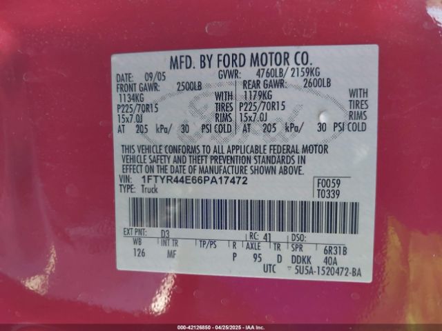 | VIN : 1FTYR44E66PA17472 |