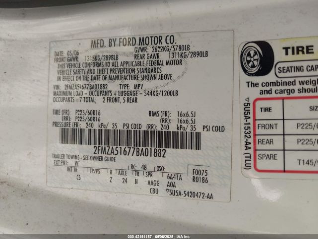 | VIN : 2FMZA51677BA01882 |