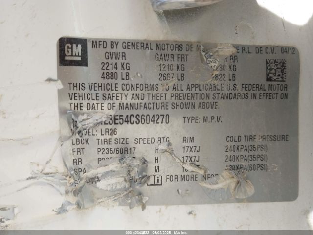 | VIN : 3GNAL3E54CS604270 |
