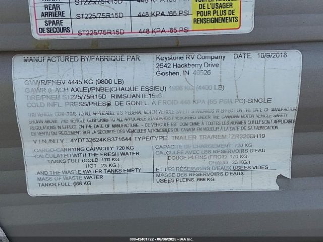 | VIN : 4YDT32624KS371644 |