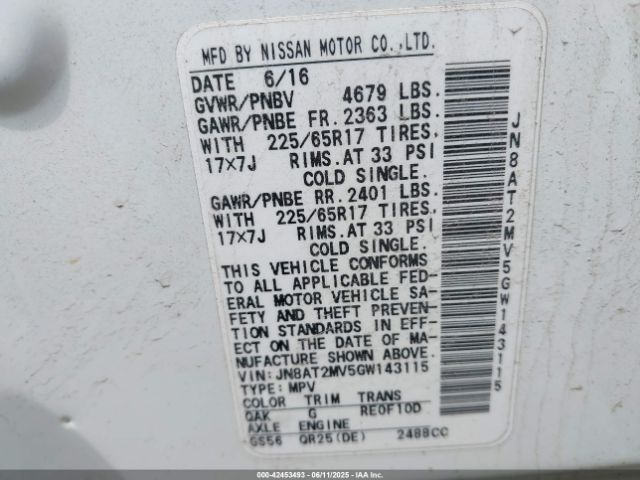 | VIN : JN8AT2MV5GW143115 |
