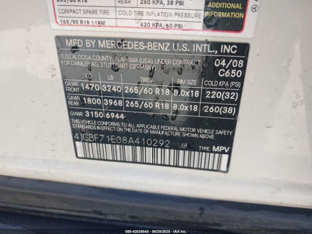 | VIN : 4JGBF71E08A410292 |