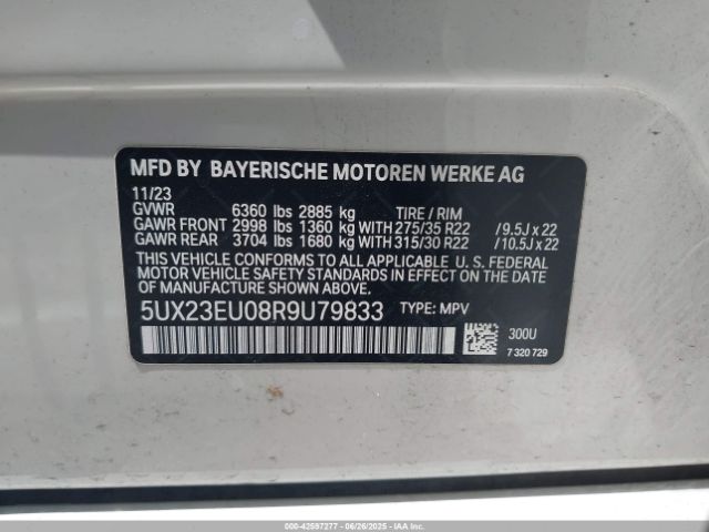 | VIN : 5UX23EU08R9U79833 |