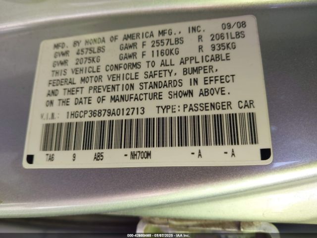 | VIN : 1HGCP36879A012713 |