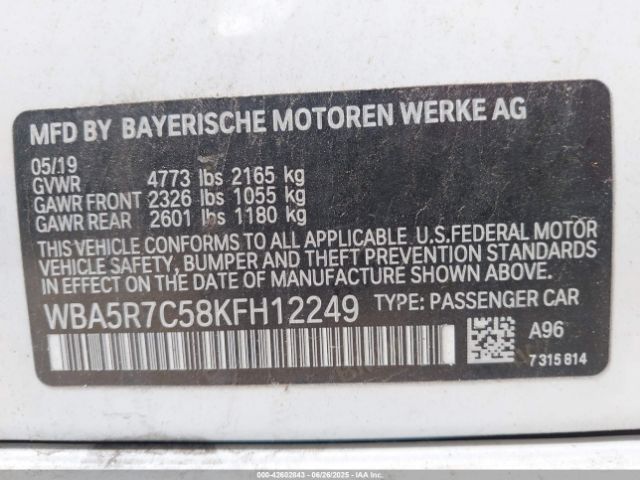 | VIN : WBA5R7C58KFH12249 |