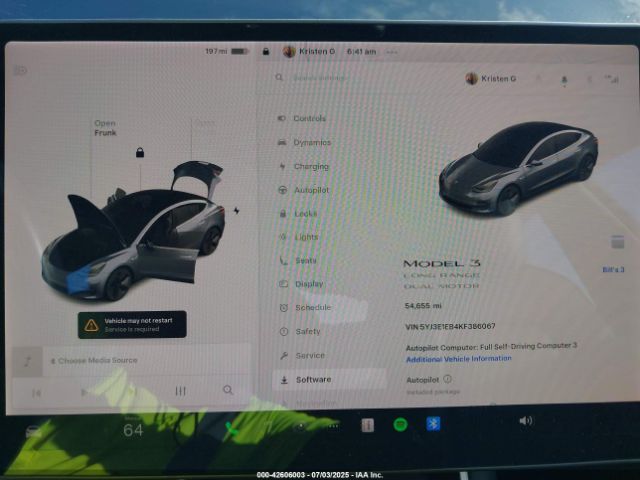 | VIN : 5YJ3E1EB4KF386067 |