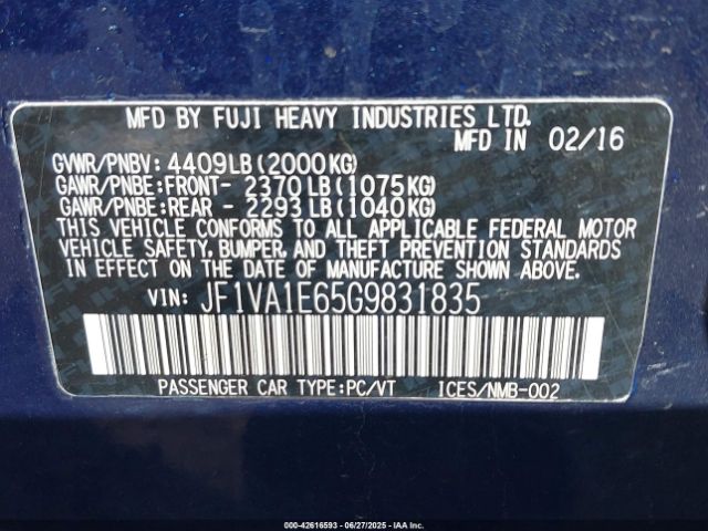 | VIN : JF1VA1E65G9831835 |
