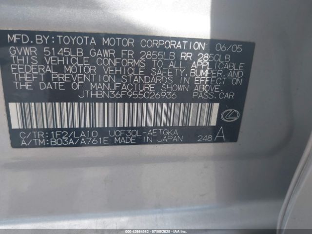 | VIN : JTHBN36F955026936 |