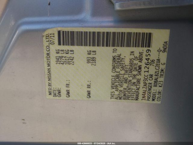 | VIN : 1N4AL2AP3CC126459 |