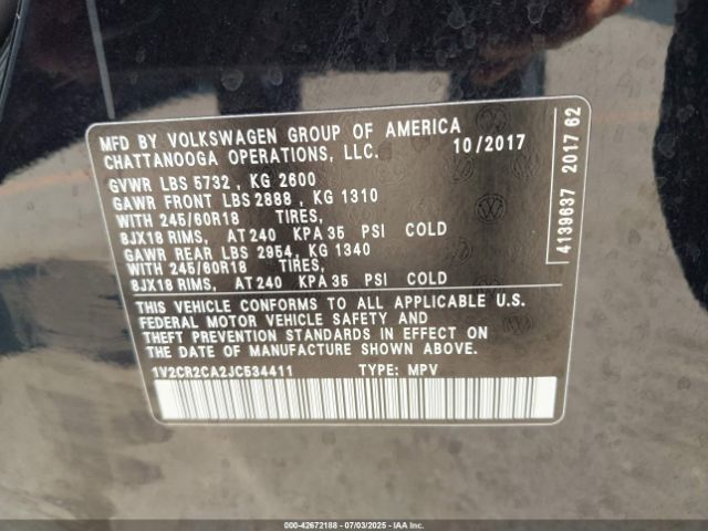 | VIN : 1V2CR2CA2JC534411 |