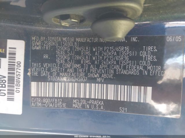 | VIN : 5TDZA23C35S345937 |