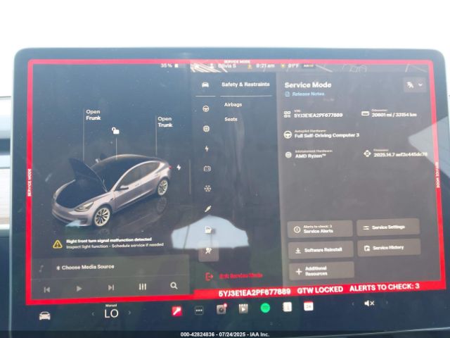 | VIN : 5YJ3E1EA2PF677889 |