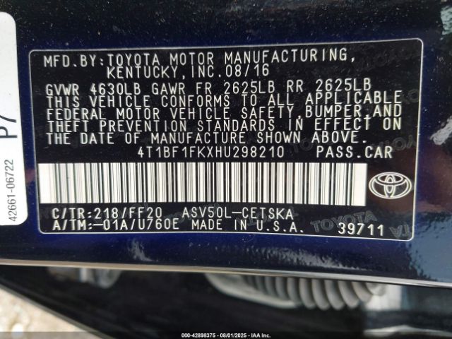 | VIN : 4T1BF1FKXHU298210 |