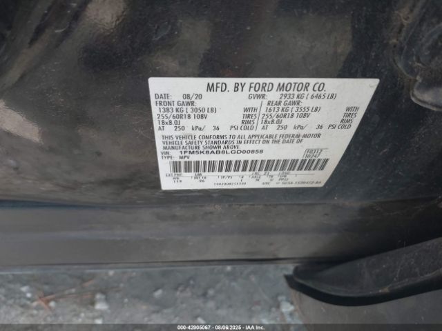 | VIN : 1FM5K8AB8LGD00858 |
