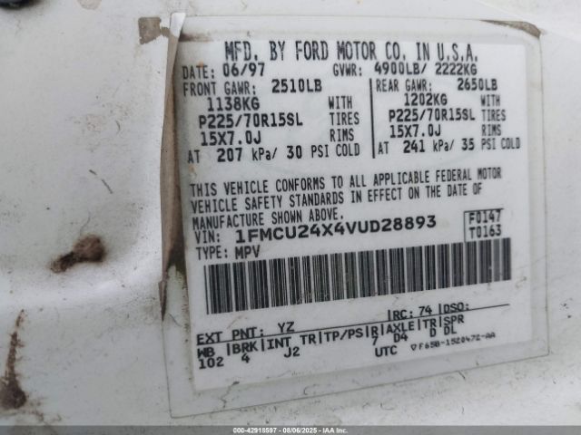 | VIN : 1FMCU24X4VUD28893 |