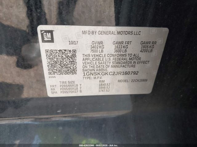 | VIN : 1GNSKGKC2JR160792 |