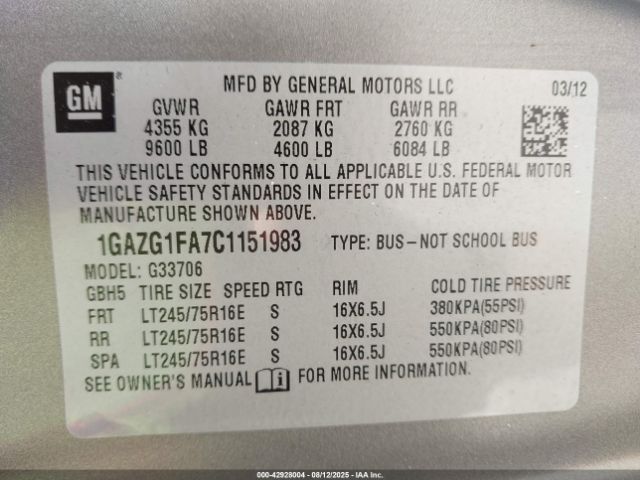 | VIN : 1GAZG1FA7C1151983 |