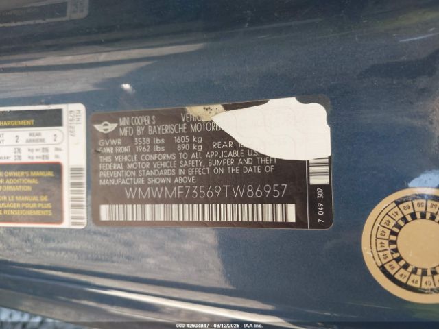 | VIN : WMWMF73569TW86957 |