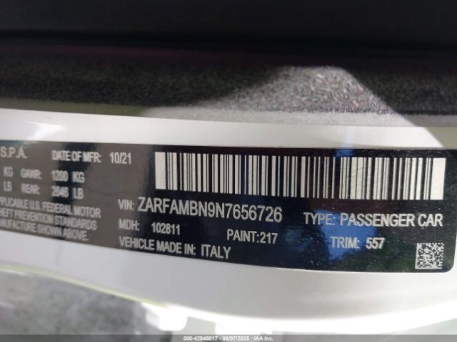 | VIN : ZARFAMBN9N7656726 |