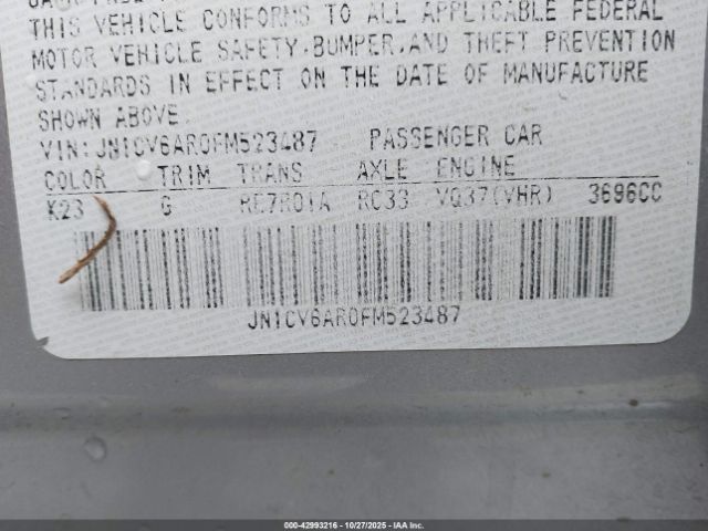 | VIN : JN1CV6AR0FM523487 |