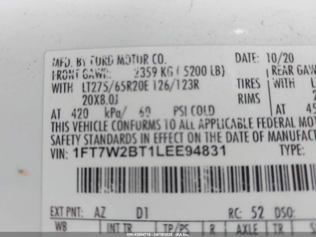 | VIN : 1FT7W2BT1LEE94831 |