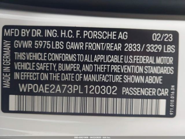 | VIN : WP0AE2A73PL120302 |