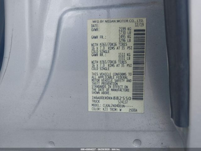 | VIN : 1N6AD0ER0KN882550 |