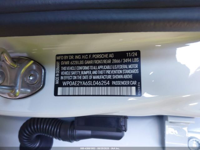 | VIN : WP0AE2YA6SL046254 |