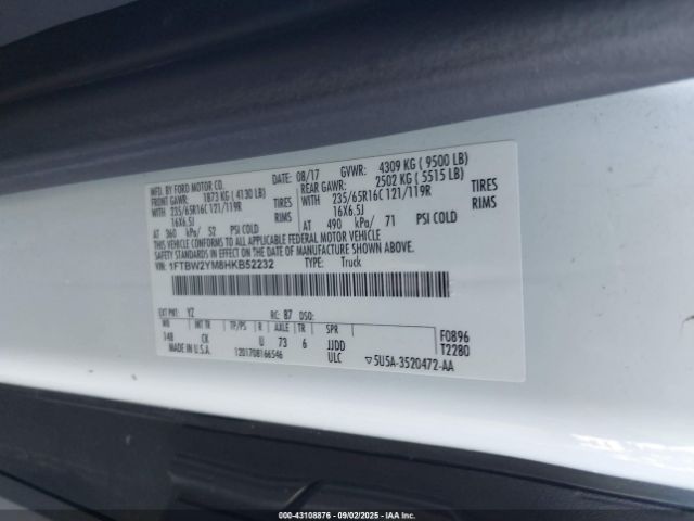 | VIN : 1FTBW2YM8HKB52232 |