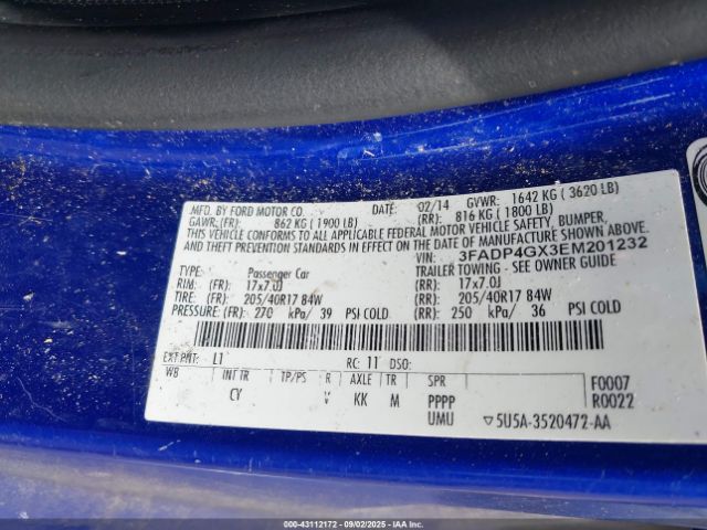 | VIN : 3FADP4GX3EM201232 |