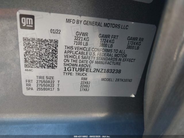 | VIN : 1GTU9FEL2NZ183238 |