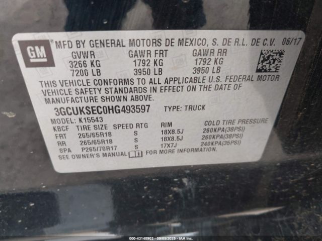 | VIN : 3GCUKSEC0HG493597 |
