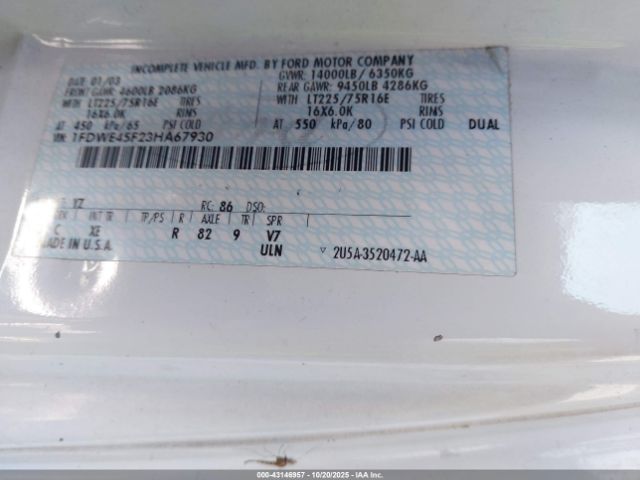 | VIN : 1FDWE45F23HA67930 |