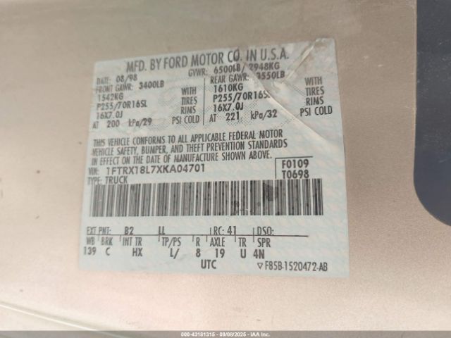 | VIN : 1FTRX18L7XKA04701 |